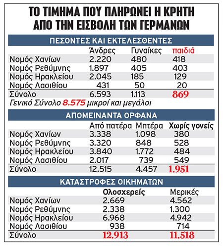 Παρά το γεγονός ότι ύστερα από μια εξαετή εξουθένωση του λαού μας ο πρόεδρος της Γερμανικής Δημοκρατίας κ. Γκάουκ καθώς και η καγκελάριος κ. Μέρκελ δήλωσαν την αναγνώριση των πολεμικών καταστροφών που έγιναν στα 4 χρόνια πολεμικής κατοχής της Ελλάδας και στα 5 χρόνια κατοχής και καταστροφή της Κρήτης.
