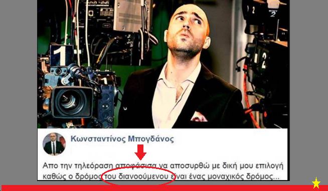Ο δεύτερος για να υπογραμμίσουμε και πάλι την συνέπεια του Μπογδάνου σε ένα έδαφος που είναι ασυναγώνιστος: Στην ανοησία.