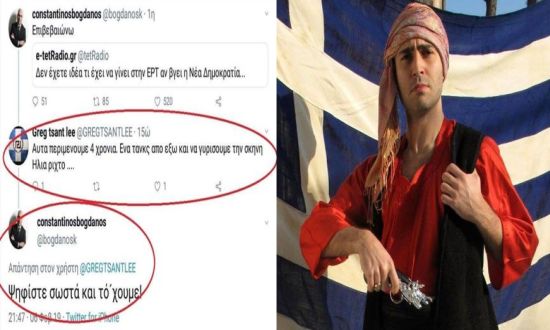 Τότε, λοιπόν, ο Μπογδάνος άνοιγε διάλογο με χρυσαυγίτες στο τουίτερ που ζητούσαν να μπουν τανκς στην ΕΡΤ και εκείνος υποσχόταν: «Ψηφίστε σωστά και το ‘χουμε»…